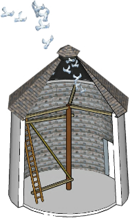 Cutaway diagram of circular dovecote.
