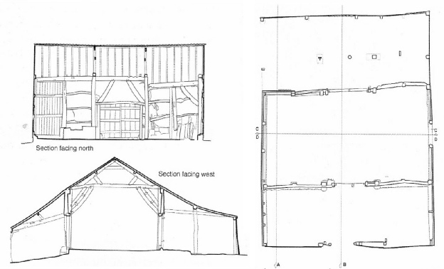 Julia’s barn in Hagworthingham, Lincolnshire is an excellent example of a mud & stud barn. It has had a number of alterations over the years including an outshut on each long side and the conversion of what was probably a hipped thatched roof into a gabled, corrugate iron roof.
