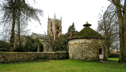 Dovecote at Avebury Manor, Wiltshire, situated between the church, manor house and manor barn.