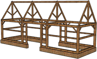 The style of truss will vary with time and place. It is found in both predominantly stone and predominatly timber building areas since it is quite economical in its use of timber and the walls can be clad or infilled with a variety of materials. This design is distinguished from the box-frame by having only one or no transverse members in the walls.