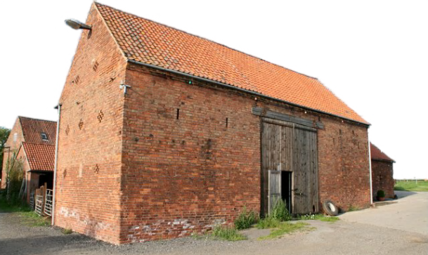 The farmer at Bar Farm allowed me to photograph his brick-built, three bay barn. Notice the diamond pattern ventilation holes in the gable. The barn is still in agricultural use, now housing a grain dryer.